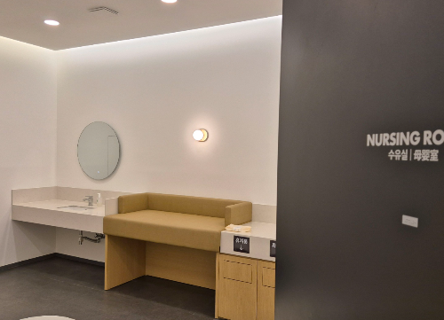 1층 전시관 화장실 옆에 수유실이 준비 되어 있습니다. 전자레인지가 있었고, 기저귀갈이대, 세면대등이 있었습니다. 그리고 수유실 안쪽에는 수유할 수 있는 분리된 공간이 따로 있었습니다. 이유식을 먹이셔야 하거나 잠깐 기저귀를 갈아야 하는 상황에 쾌적하게 이용하실 수 있는 공간이었습니다.